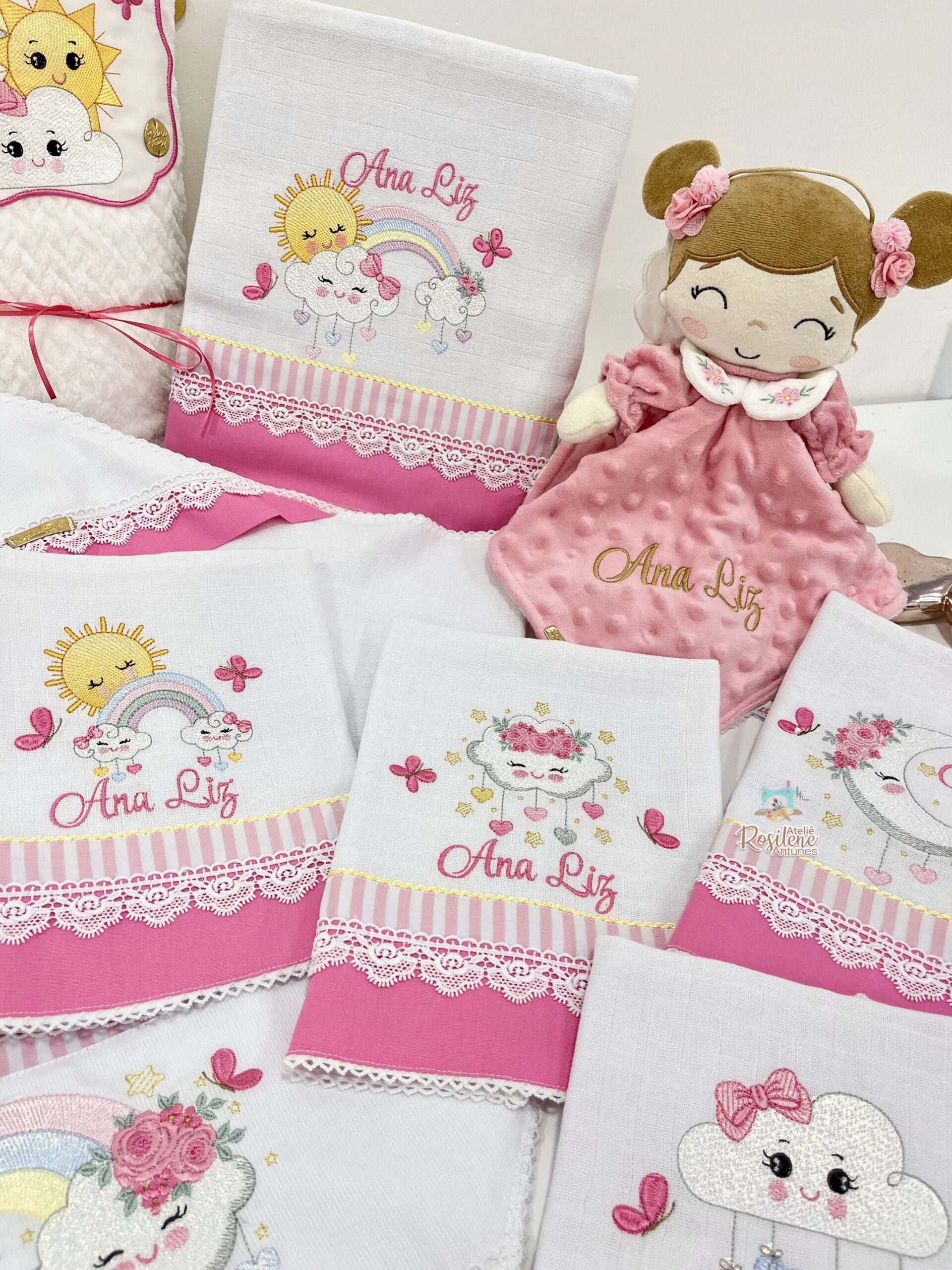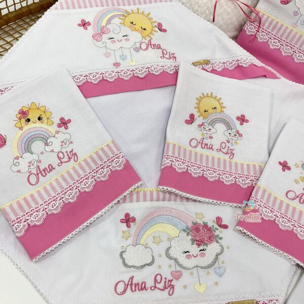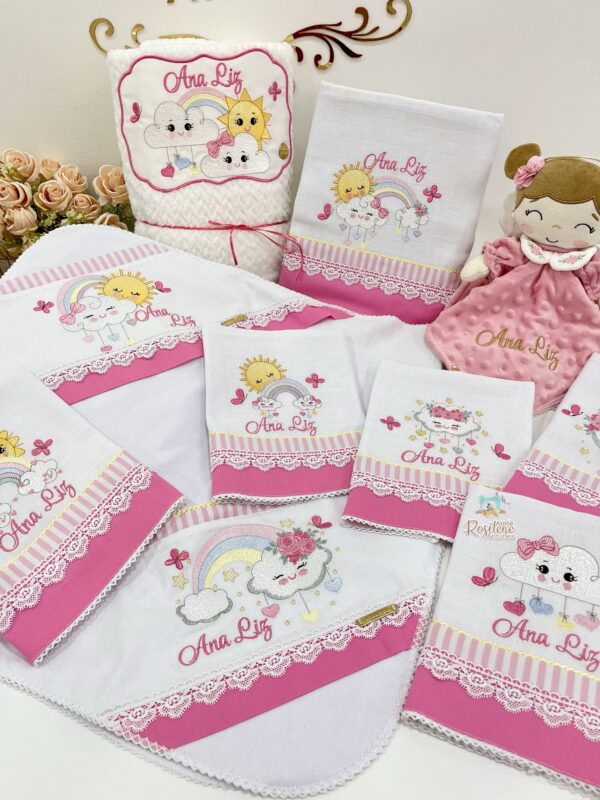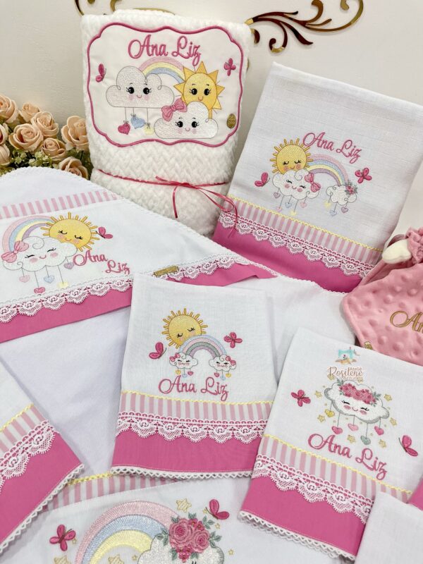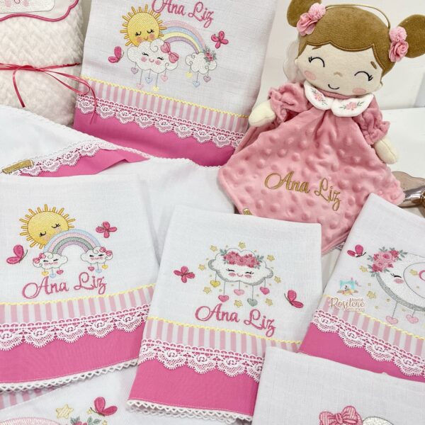Oferecemos uma seleção de kits já montados como este , que servem como inspirações para o seu enxoval. Você pode optar por manter o tema escolhido ou personalizar de acordo com o seu gosto. Sinta-se à vontade para trocar o tema, as cores e adicionar o nome do seu bebê, tornando cada item verdadeiramente único e especial.