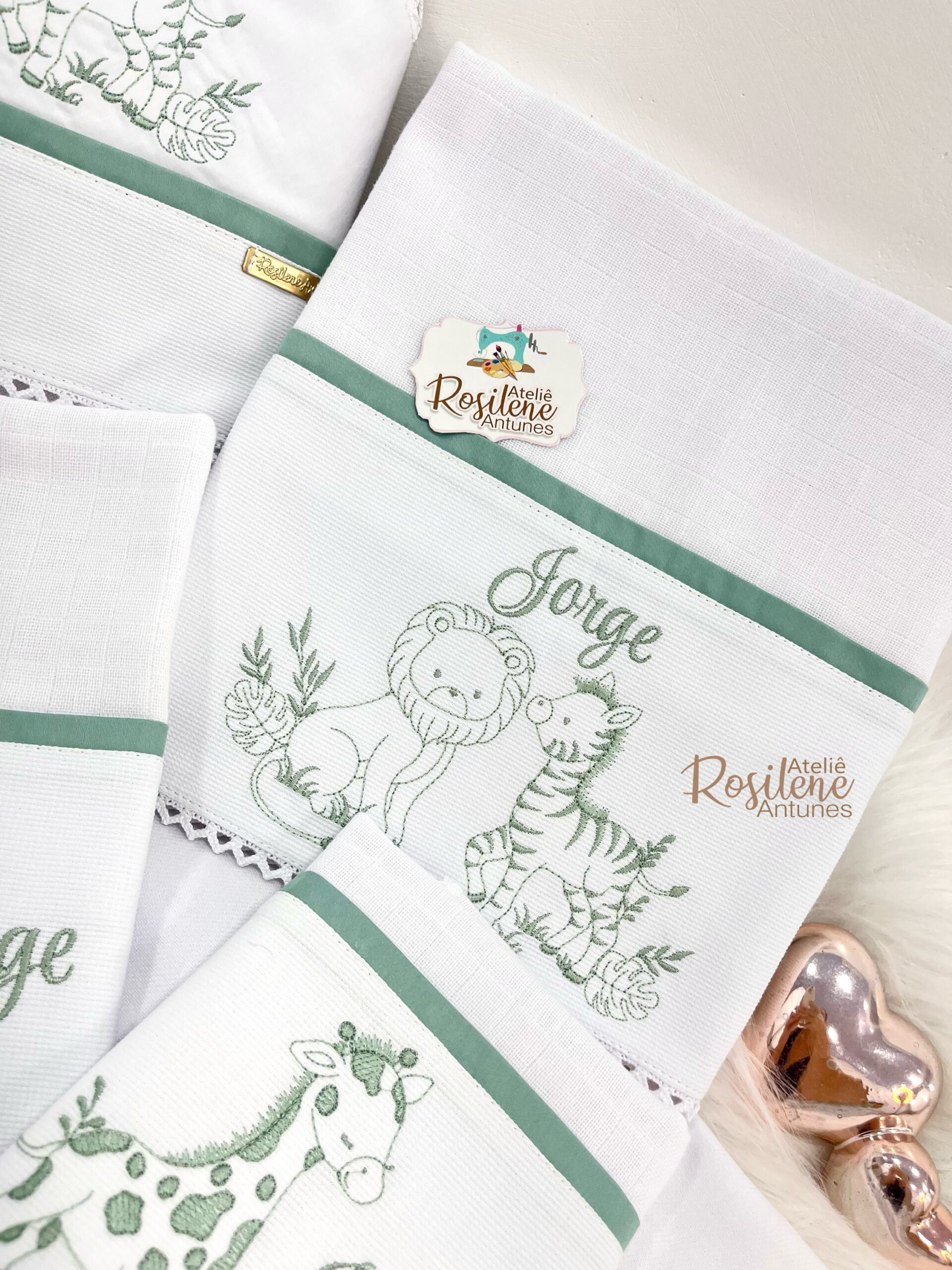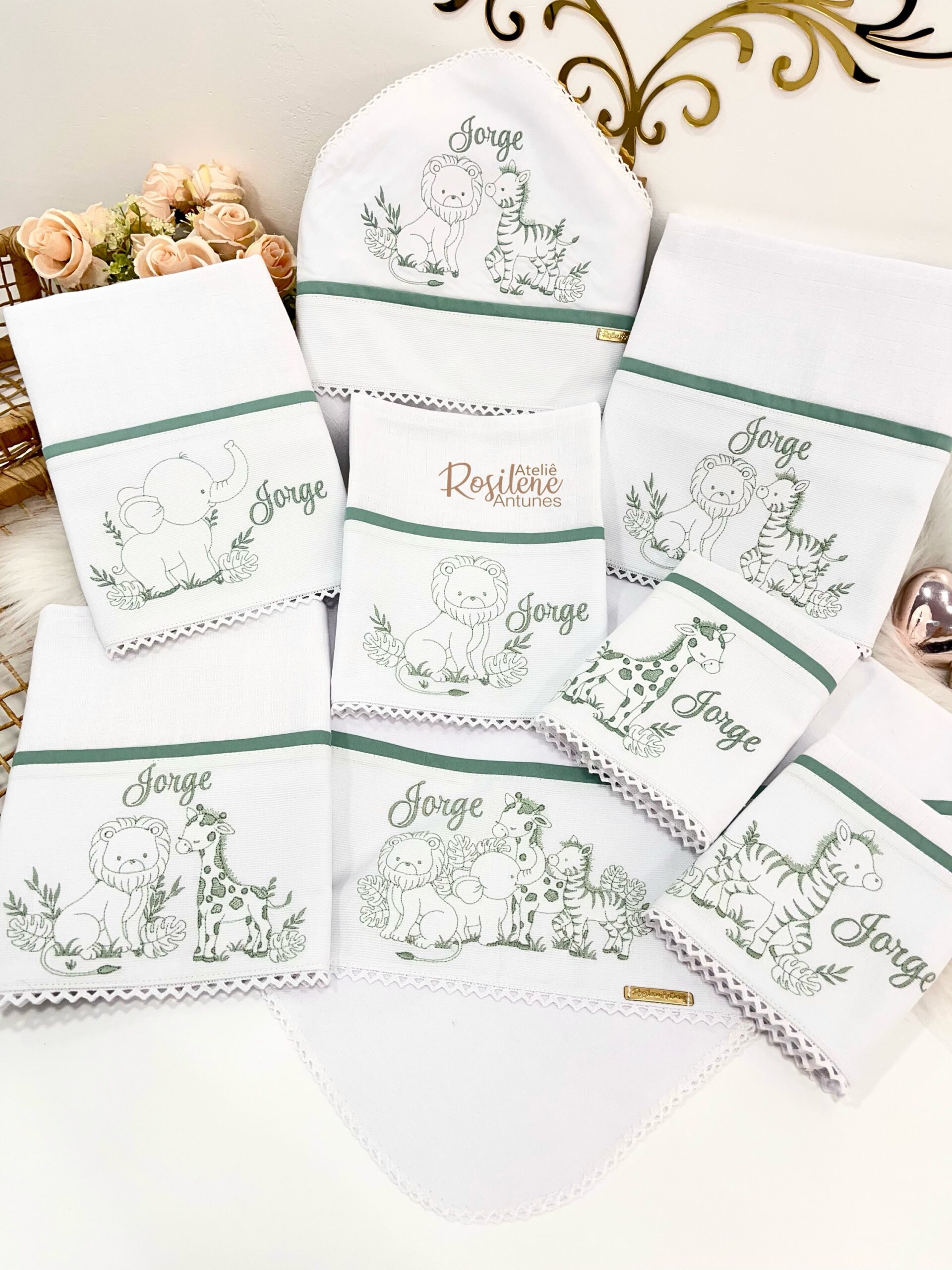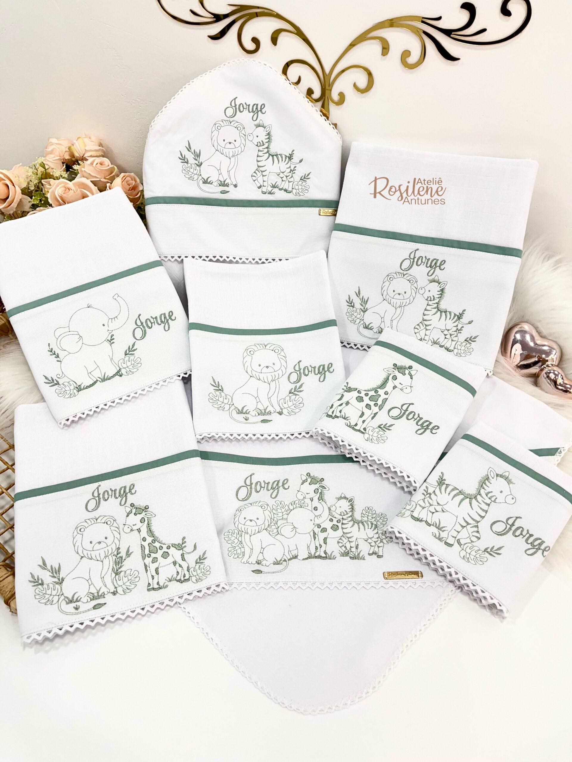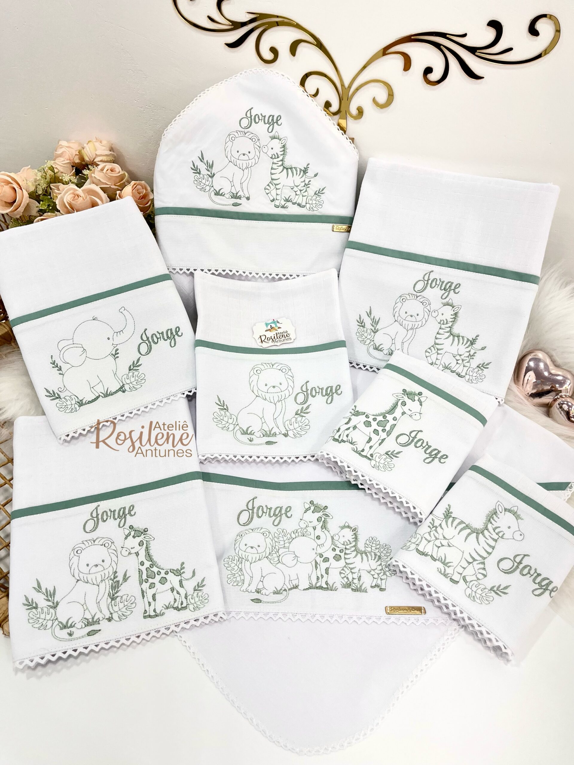Oferecemos uma seleção de kits já montados como este , que servem como inspirações para o seu enxoval. Você pode optar por manter o tema escolhido ou personalizar de acordo com o seu gosto. Sinta-se à vontade para trocar o tema, as cores e adicionar o nome do seu bebê, tornando cada item verdadeiramente único e especial.