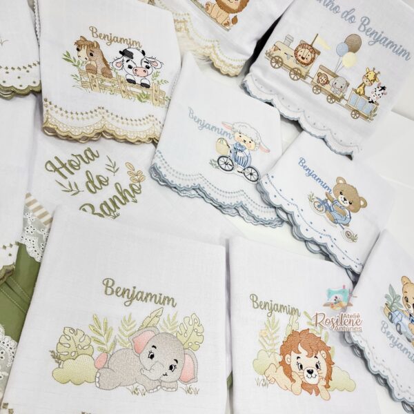 -3 fraldas grandes 70x80cm na faixa fustão barra bordada 225