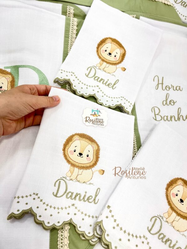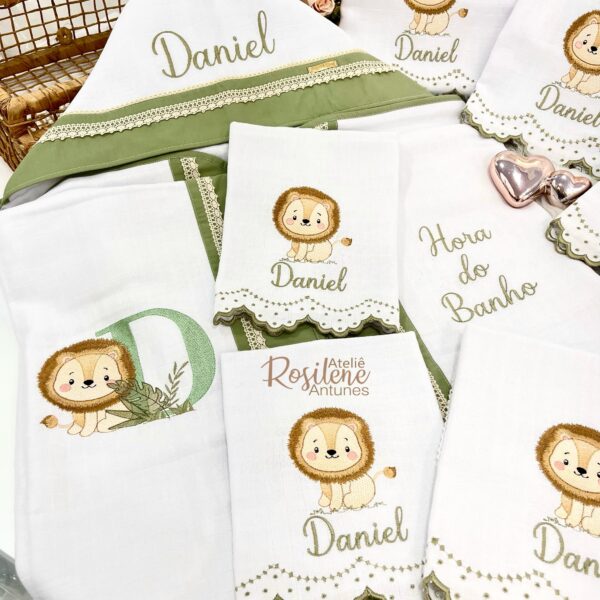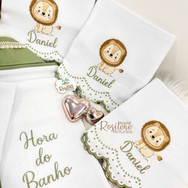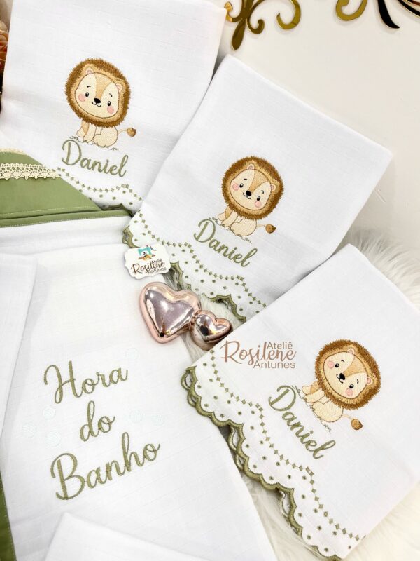 Oferecemos uma seleção de kits já montados como este , que servem como inspirações para o seu enxoval. Você pode optar por manter o tema escolhido ou personalizar de acordo com o seu gosto. Sinta-se à vontade para trocar o tema, as cores e adicionar o nome do seu bebê, tornando cada item verdadeiramente único e especial.