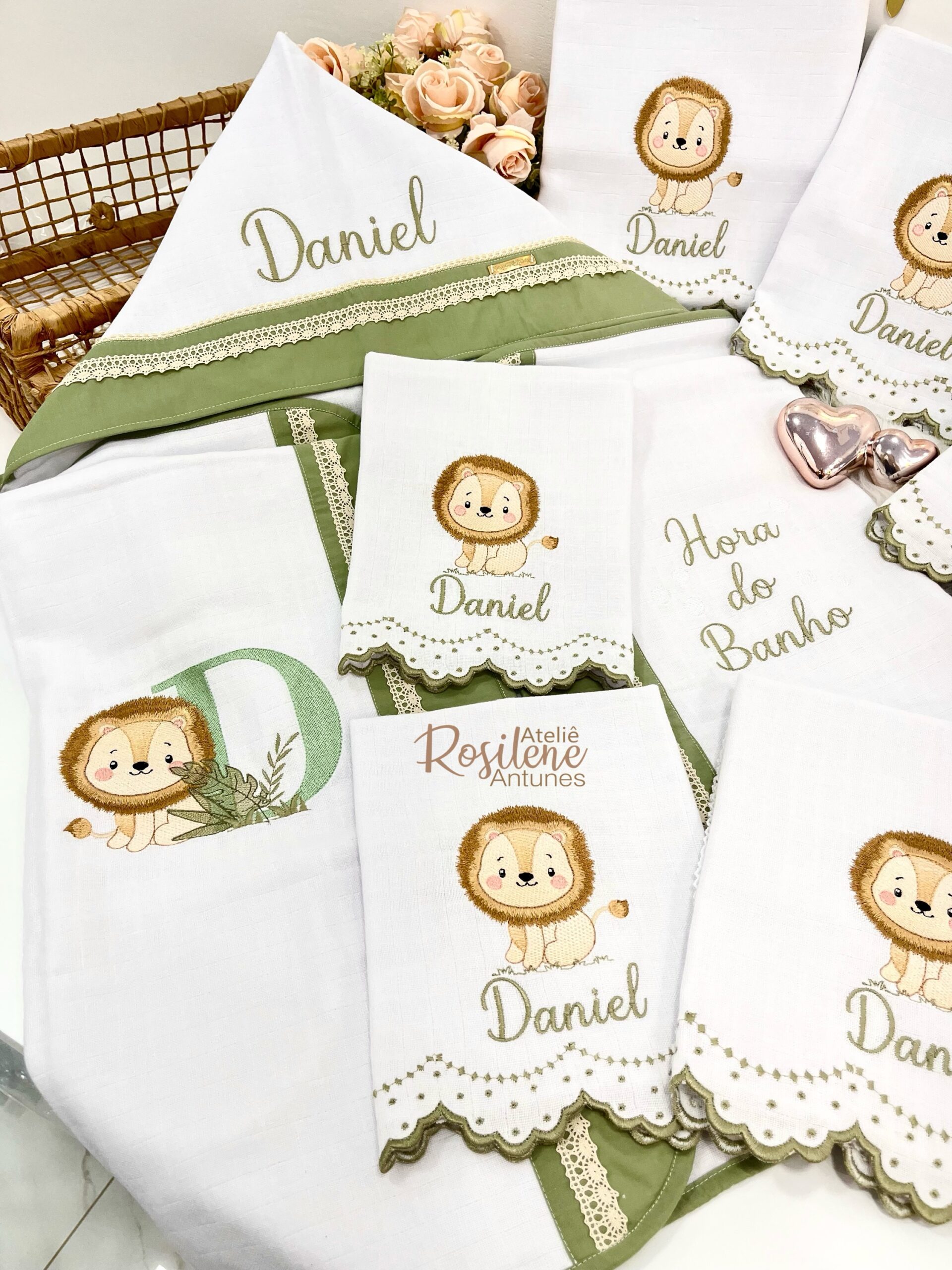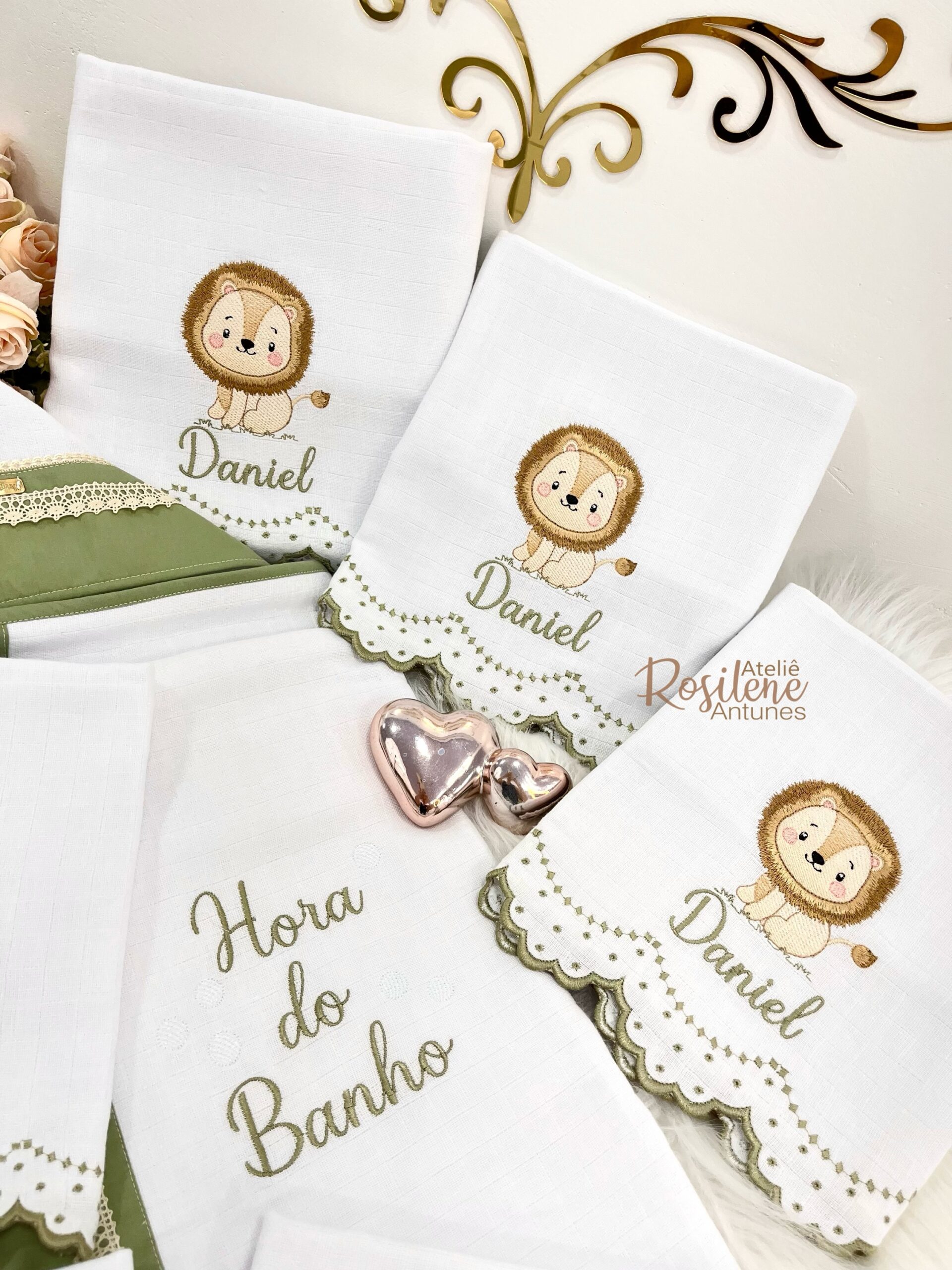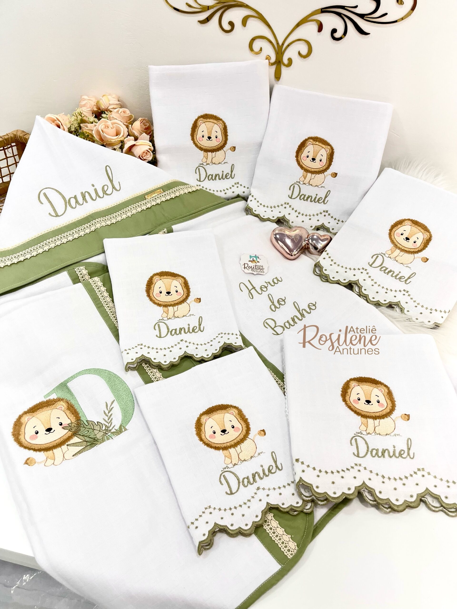Oferecemos uma seleção de kits já montados como este , que servem como inspirações para o seu enxoval. Você pode optar por manter o tema escolhido ou personalizar de acordo com o seu gosto. Sinta-se à vontade para trocar o tema, as cores e adicionar o nome do seu bebê, tornando cada item verdadeiramente único e especial.