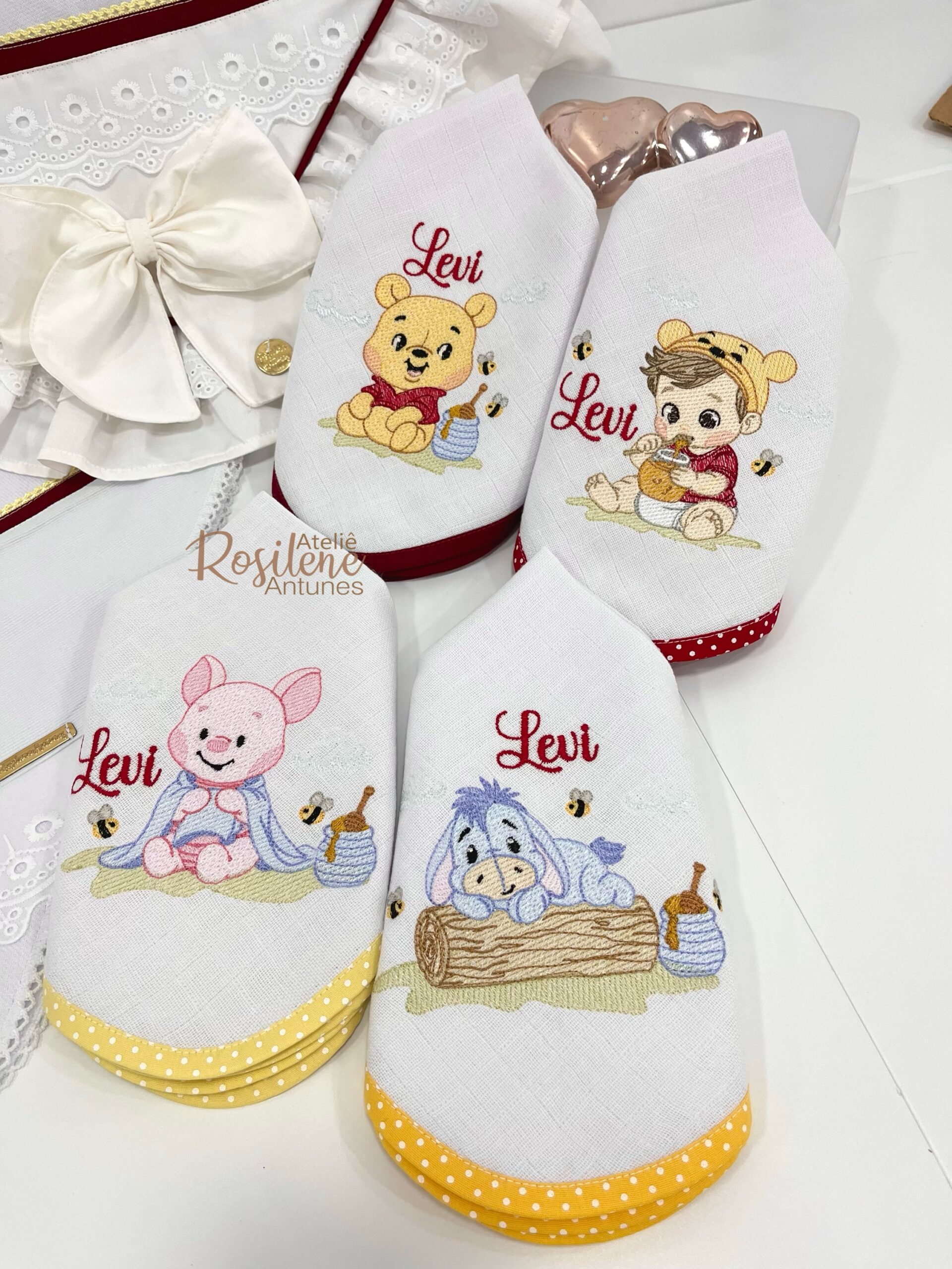 Oferecemos uma seleção de kits já montados como este , que servem como inspirações para o seu enxoval. Você pode optar por manter o tema escolhido ou personalizar de acordo com o seu gosto. Sinta-se à vontade para trocar o tema, as cores e adicionar o nome do seu bebê, tornando cada item verdadeiramente único e especial.