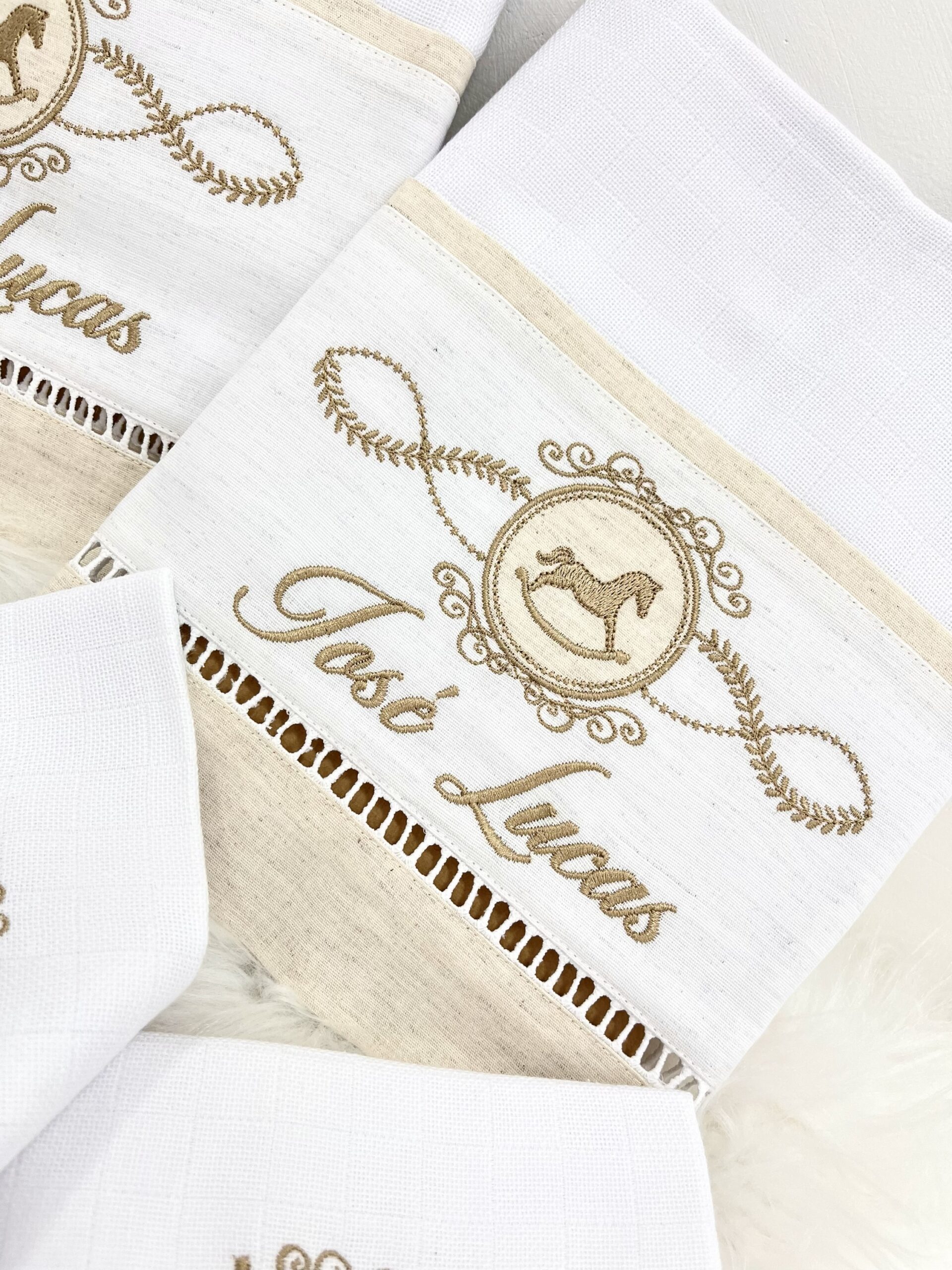Confeccionado com fralda premium da marca Valetex, com trama quadriculada e toque extremamente macio e aveludado — ideal para a pele sensível do bebê.