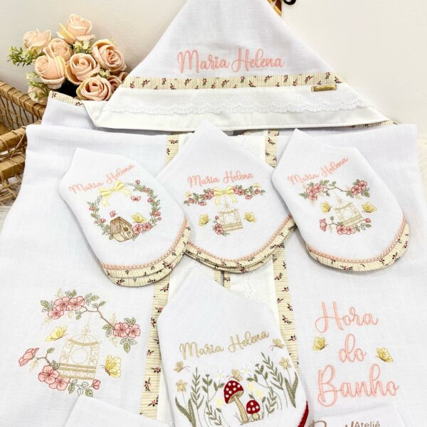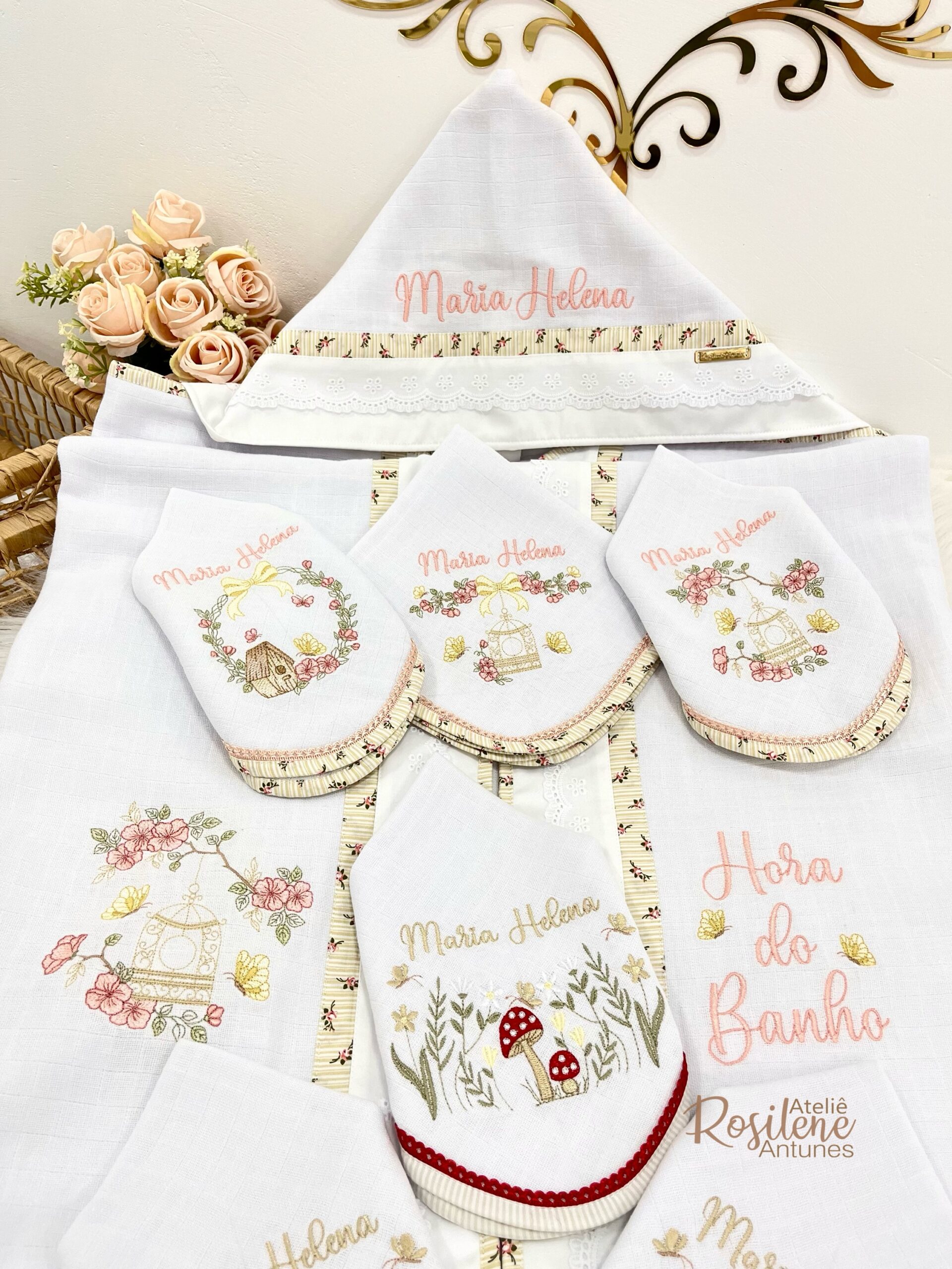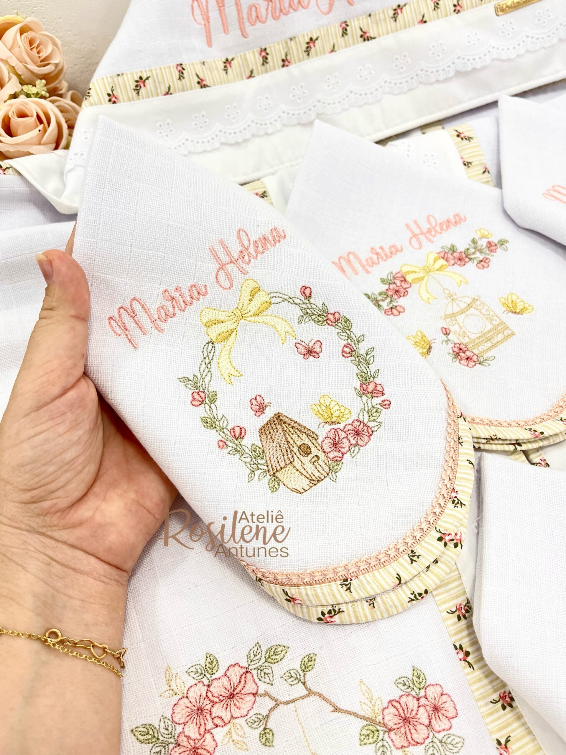 Oferecemos uma seleção de kits já montados como este , que servem como inspirações para o seu enxoval. Você pode optar por manter o tema escolhido ou personalizar de acordo com o seu gosto. Sinta-se à vontade para trocar o tema, as cores e adicionar o nome do seu bebê, tornando cada item verdadeiramente único e especial.