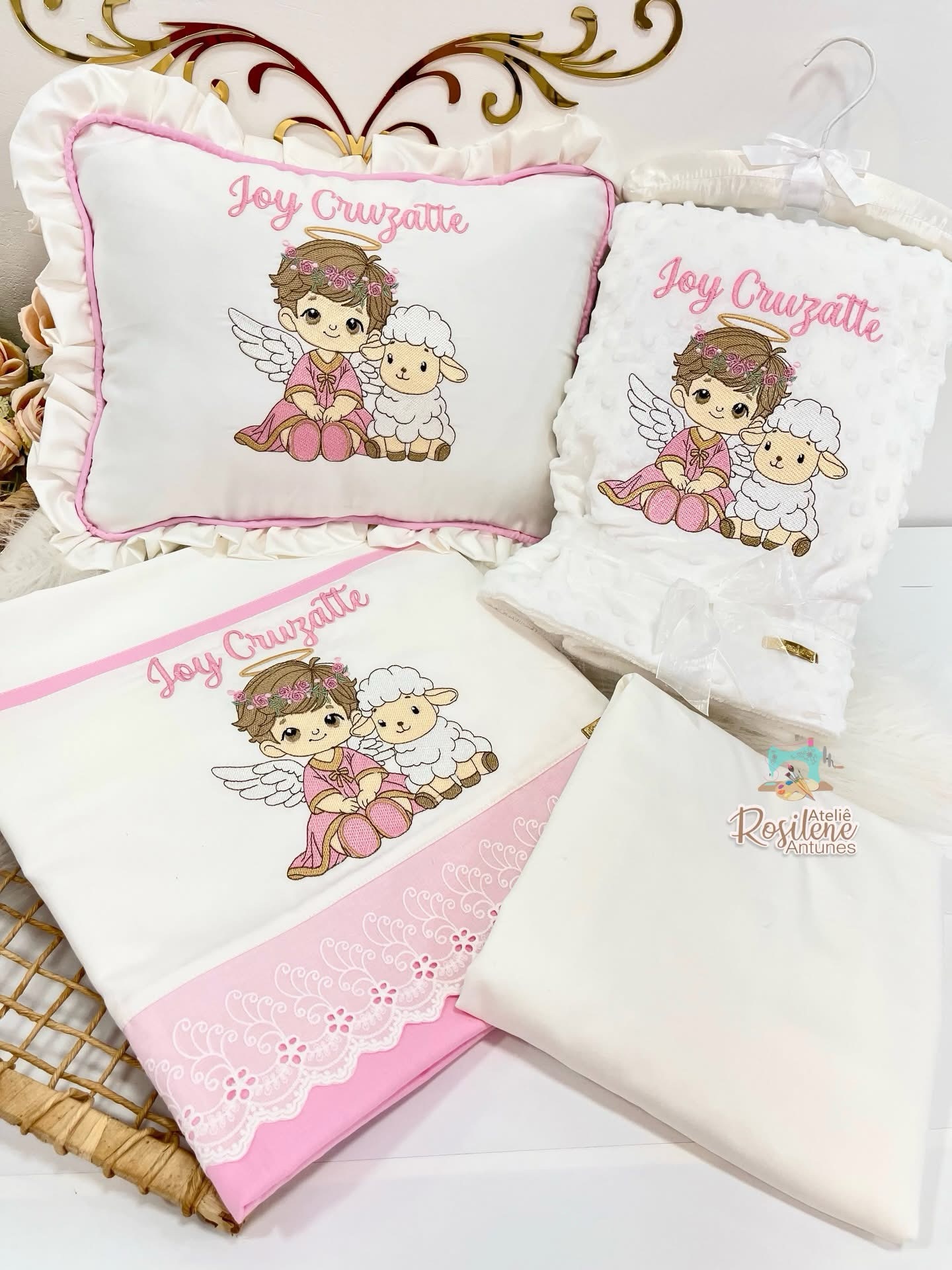 – Lençol Liso Personalizado: Feito com tecido macio e suave ao toque, o lençol liso é ideal para acompanhar o suave descanso do seu bebê. Personalize com o nome ou uma frase especial para criar uma peça exclusiva.