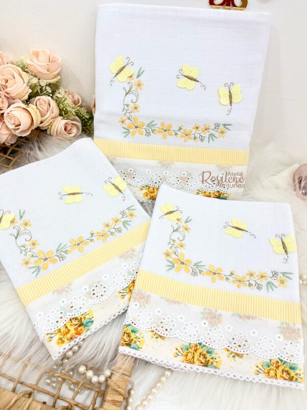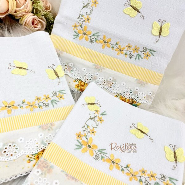 kit Passeio, ombro e Boca floral com borboletinhas 3D