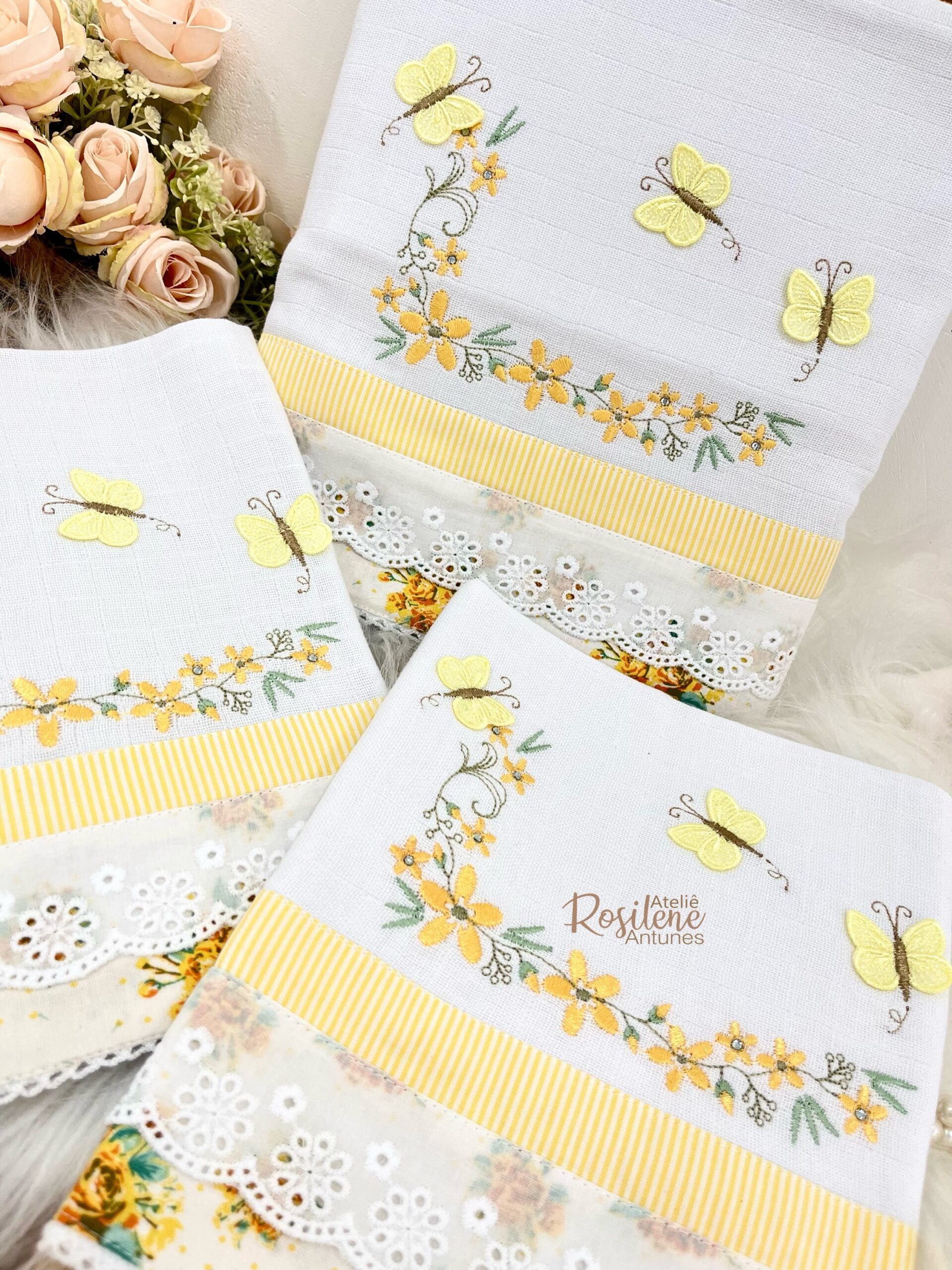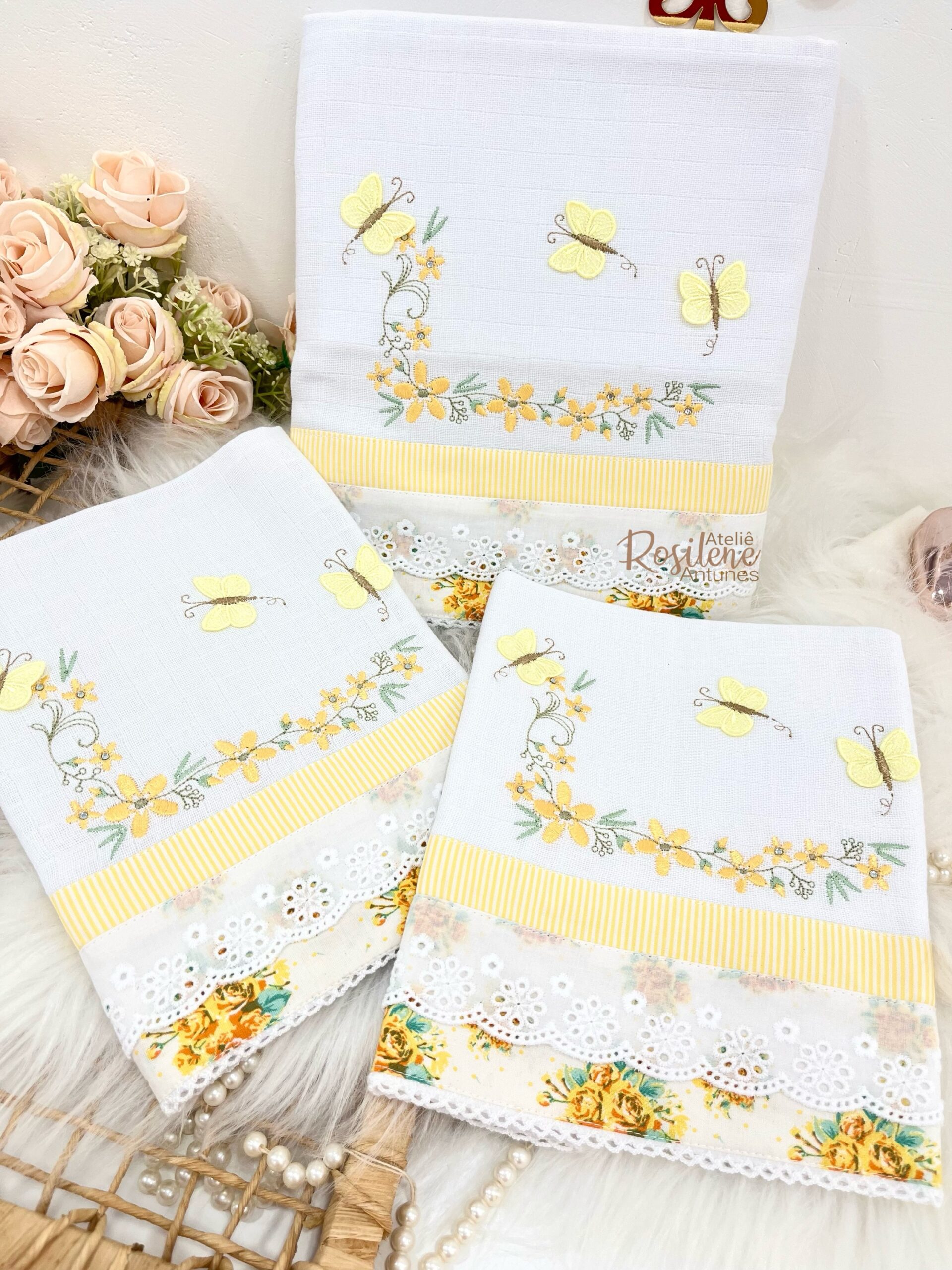 O diferencial fica por conta do bordado, que pode incluir o nome do bebê, Essa personalização não só transforma cada fralda em uma peça exclusiva, mas também se torna uma linda lembrança.