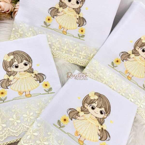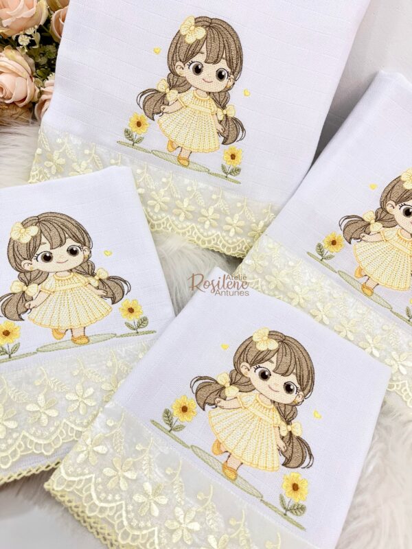 O diferencial fica por conta do bordado, que pode incluir o nome do bebê, Essa personalização não só transforma cada fralda em uma peça exclusiva, mas também se torna uma linda lembrança.