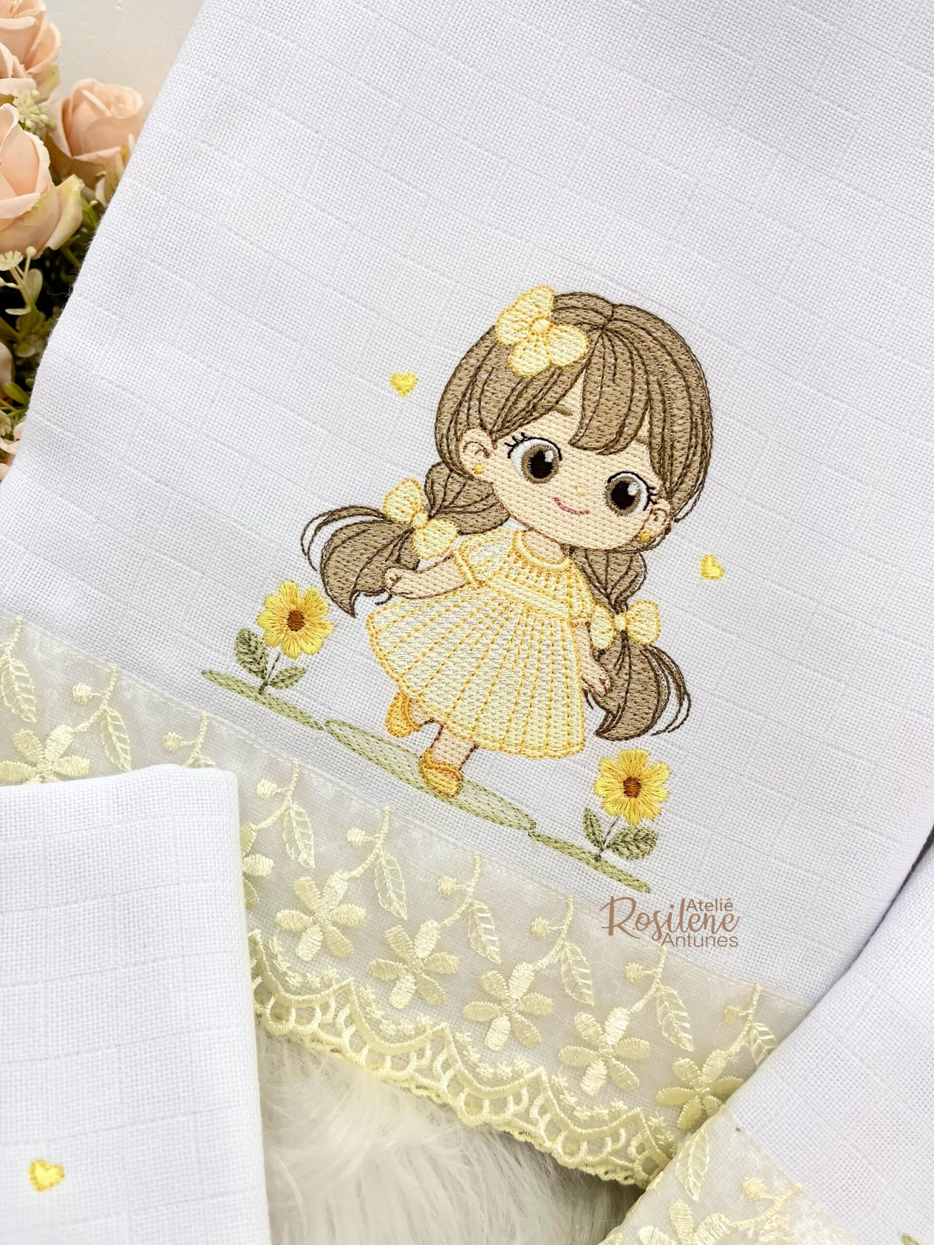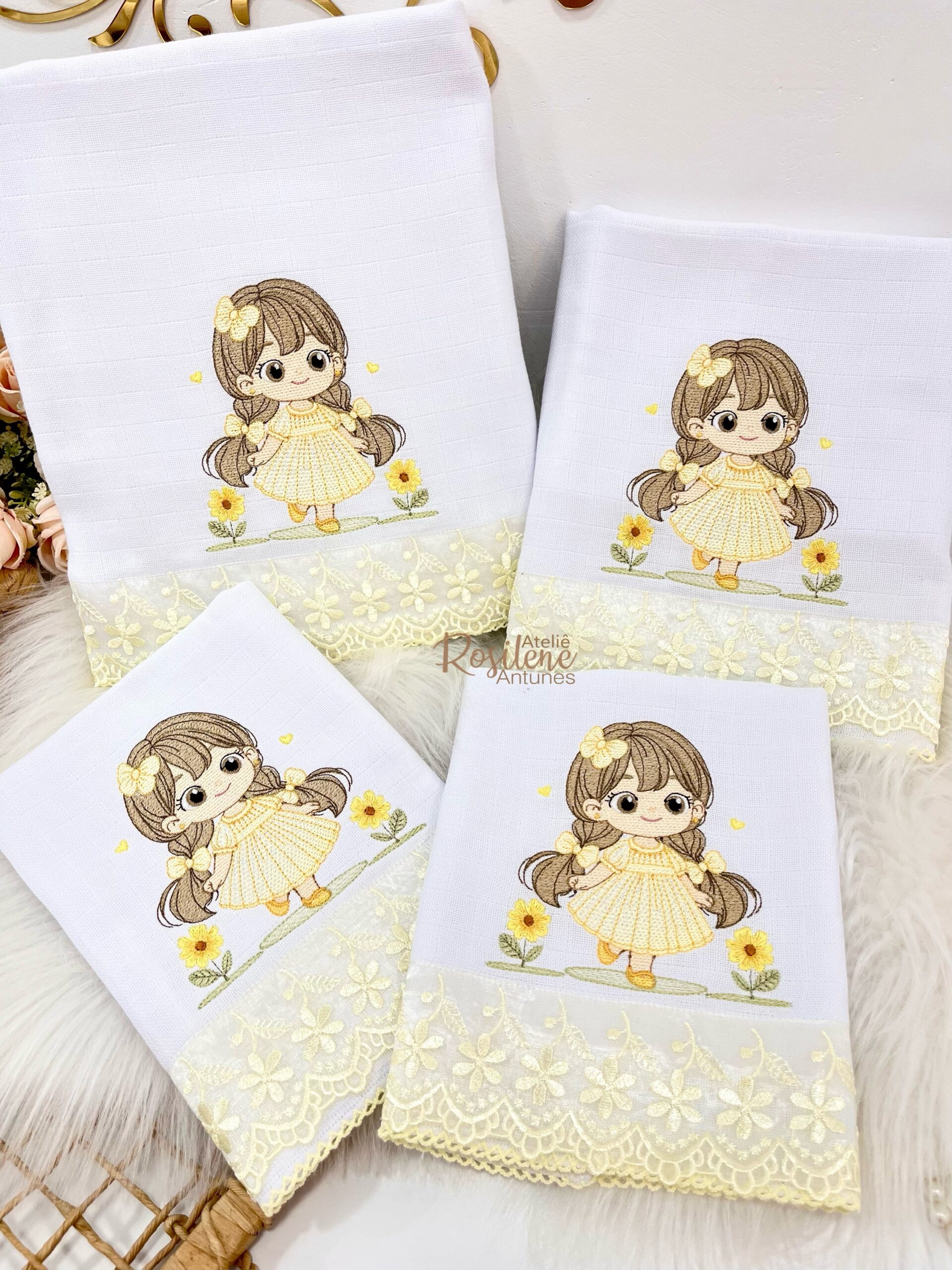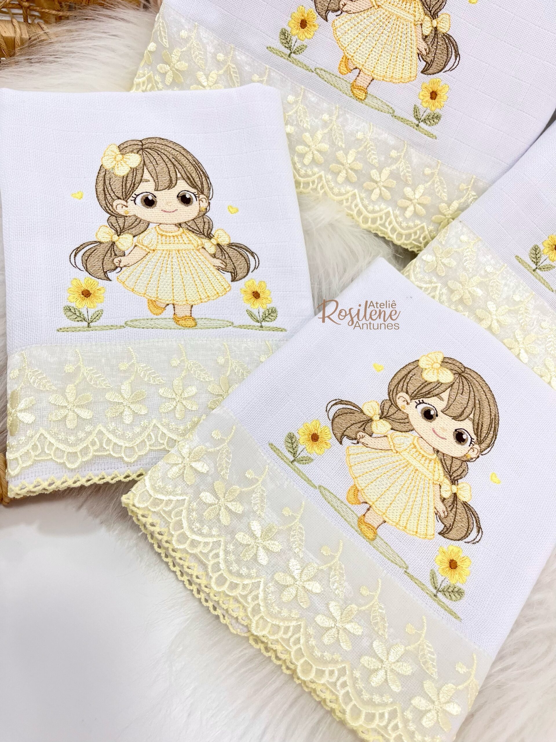 O diferencial fica por conta do bordado, que pode incluir o nome do bebê, Essa personalização não só transforma cada fralda em uma peça exclusiva, mas também se torna uma linda lembrança.