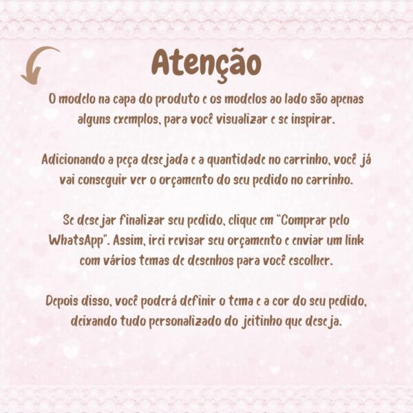 Cada ponto e cada bordado contam uma história, e é isso que torna nosso produto tão especial. Vamos celebrar a individualidade do seu bebê com uma peça que é só dele!