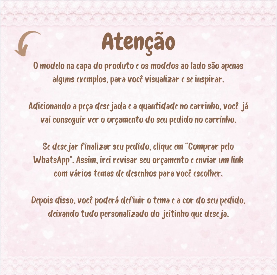 Cada ponto e cada bordado contam uma história, e é isso que torna nosso produto tão especial. Vamos celebrar a individualidade do seu bebê com uma peça que é só dele!