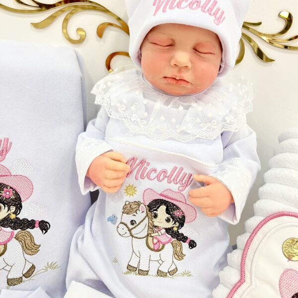 Cada saída maternidade é personalizada com o nome e o tema escolhido pela mamãe, tornando esse momento ainda mais especial.