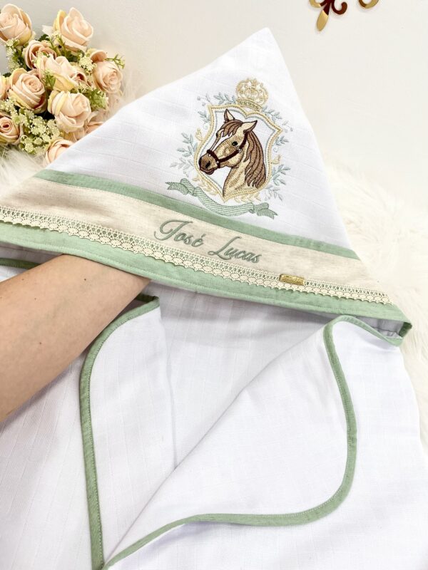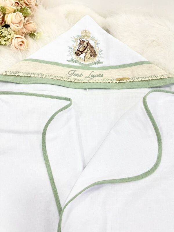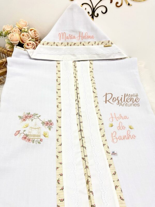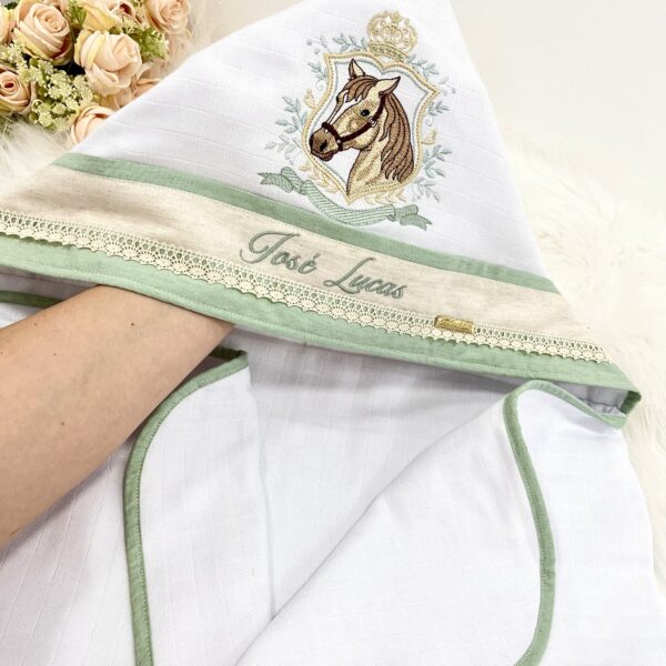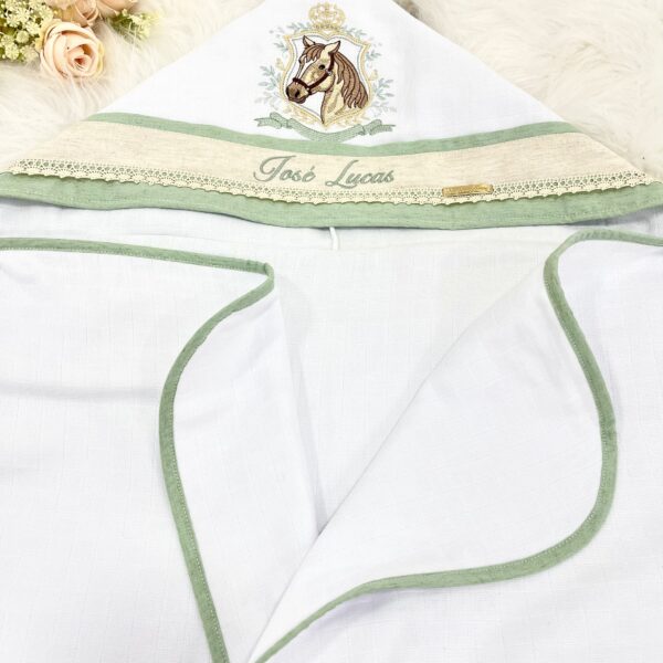 Apresentamos a Tolha de Bebê Personalizada Modelo Capuz luxo da Linha Premium, a escolha ideal para envolver seu pequeno em conforto e estilo. Com um design inovador e funcional, esta tolha destaca-se pela alta absorção e maciez, garantindo uma secagem rápida e acolhedora após o banho.